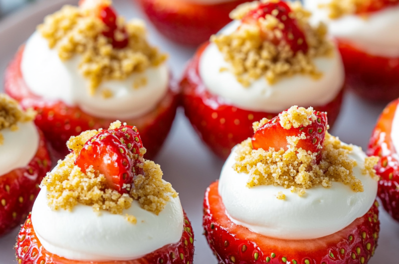 This recipe is straightforward and encourages creativity while you prepare it. The sweet, creamy filling evokes the richness of traditional cheesecake, while the fresh strawberries provide a crisp burst of flavor and a vibrant color contrast. These little gems are not just a feast for the eyes; they are also a celebration of taste that is sure to impress your guests.