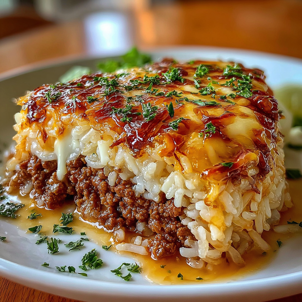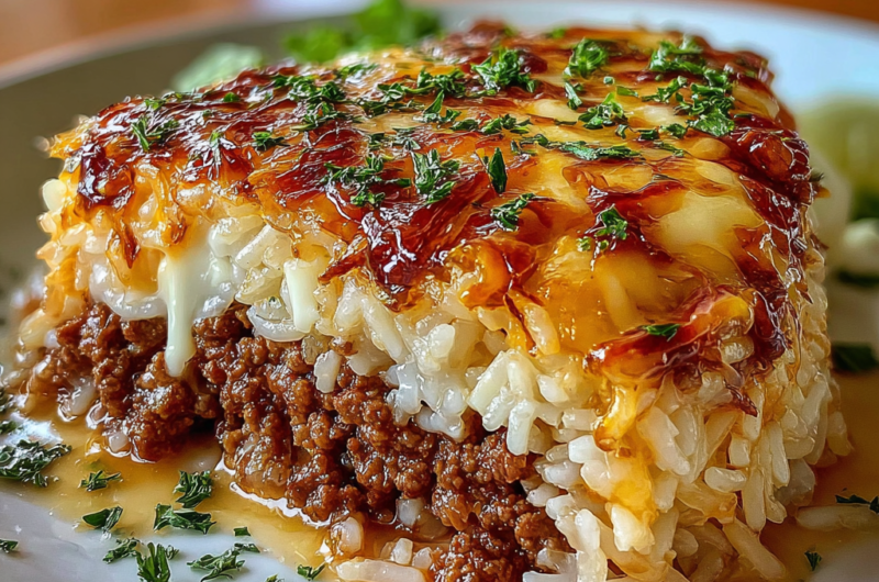 Savoring French Onion Ground Beef Rice Casserole